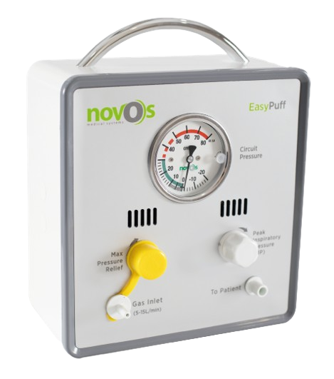 Easypuff is a lightweight and portable T-piece infant resuscitator designed for controlled and effective resuscitation in delivery rooms, NICUs, emergency situations, and during transport. Unlike self-inflating bags, Easypuff ensures precise control of PIP (Peak Inspiratory Pressure) and PEEP (Positive End Expiratory Pressure), minimizing risks like barotrauma and insufficient ventilation. It delivers 21% to 100% oxygen concentration using an external gas source, with optional integration into incubators or mobile stands. Easypuff is easy to operate with just a finger, making it ideal for fast, consistent, and safe neonatal respiratory support.